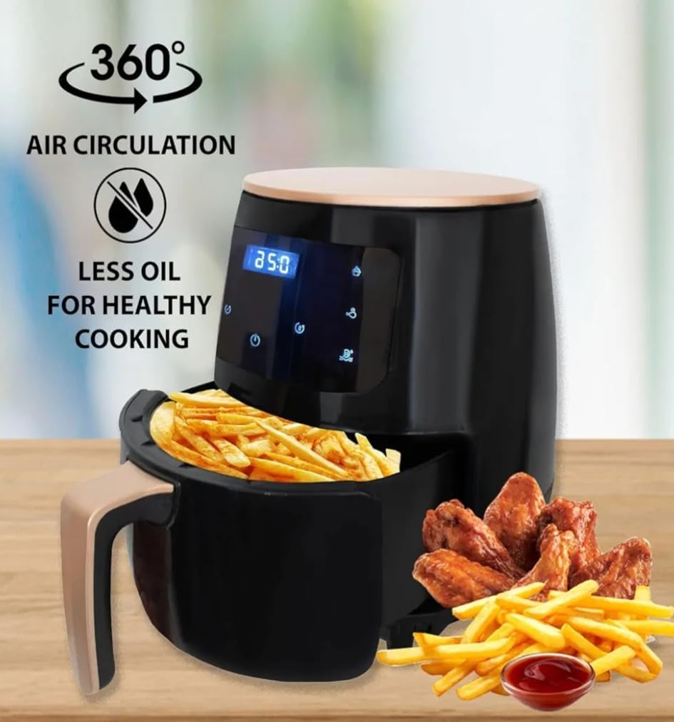* **قلي بدون مجهود ولا "تأنيب ضمير":** استمتع بالبطاطس والفراخ المقرمشة بملعقة زيت واحدة أو بدون زيت تماماً. وداعاً للدهون الزائدة، وأهلاً بحياة صحية لك ولأولادك.